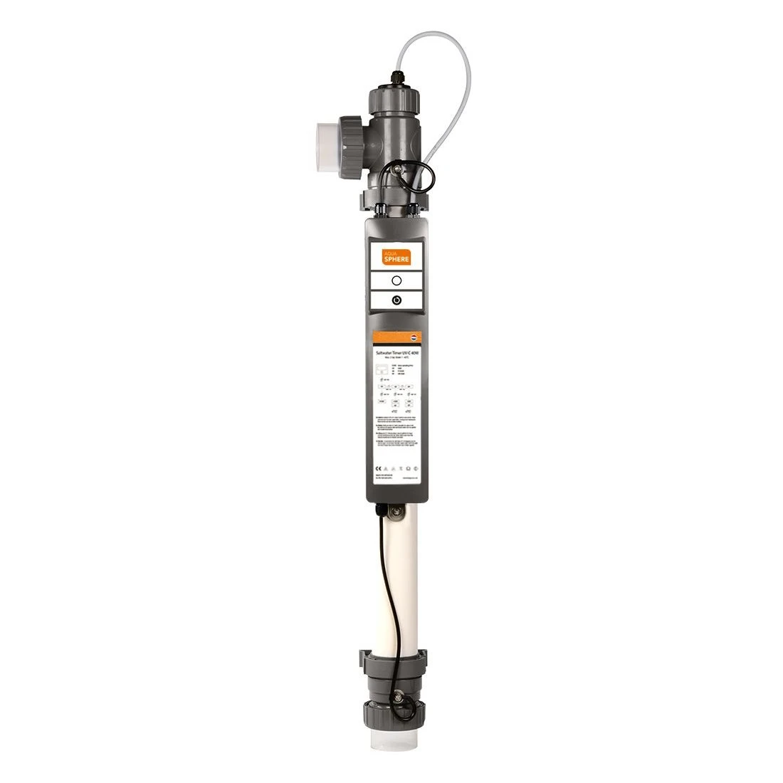 AquaSphere Satlwater Signal UV-C is vergelijkbaar met AquaSphere Saltwater UV-C, maar dan voorzien van LED timer die continue de lampstatus duidelijk in kleur weergeeft.