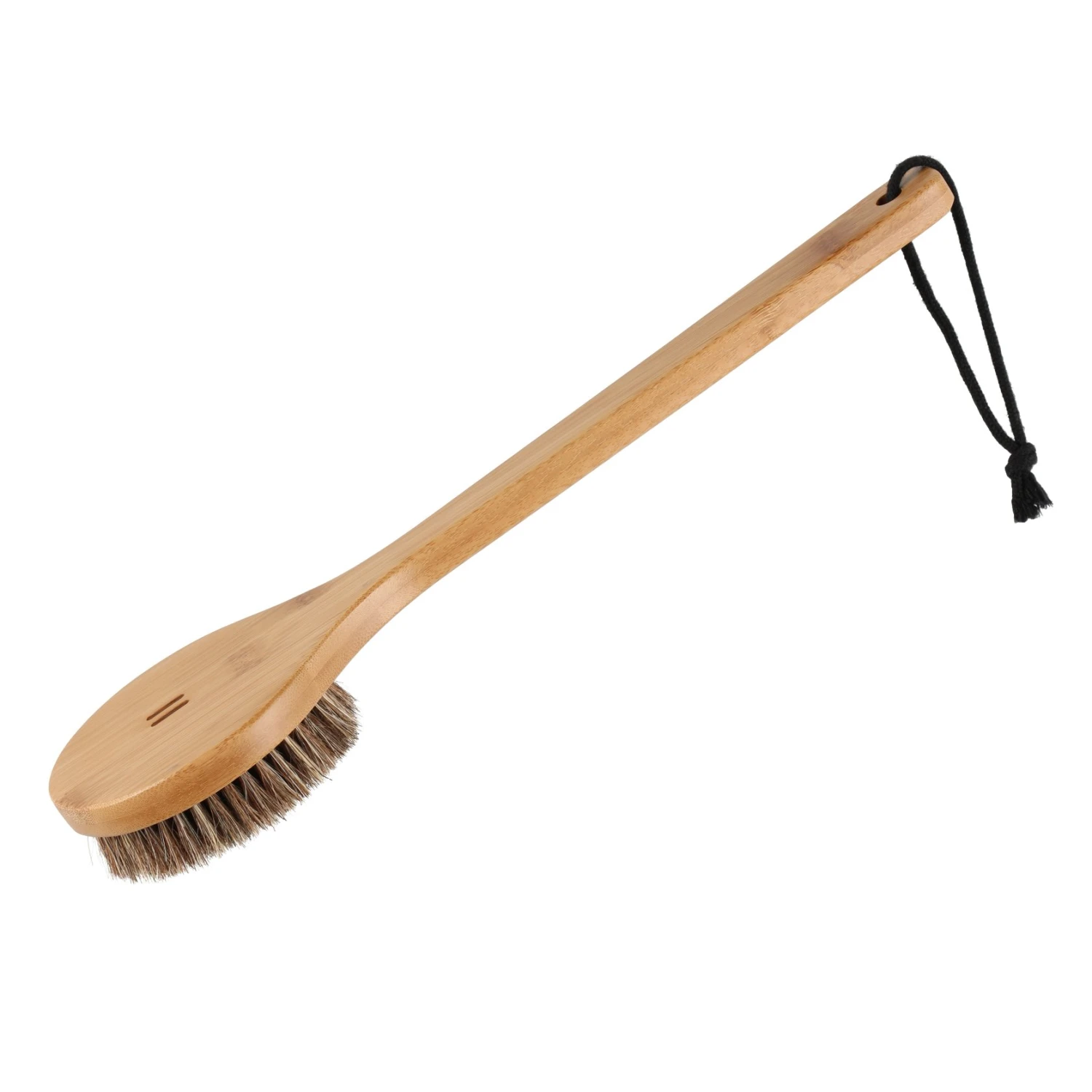 Wasborstel van bamboe en natuurlijk haar. Wrijf je huid schoon met een licht exfoliërende borstel en je favoriete zeep. Verfrist de bloedcirculatie van uw lichaam.
