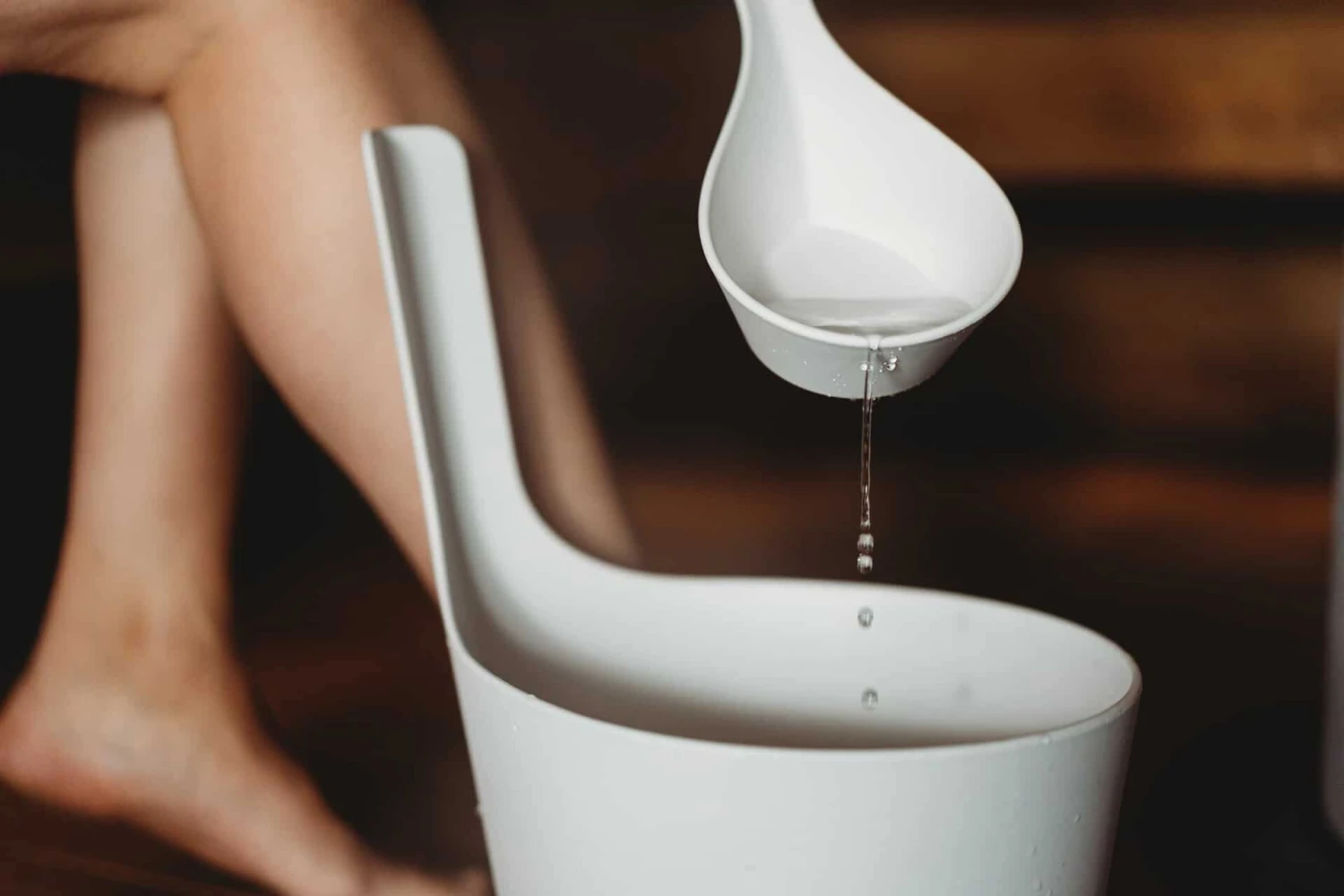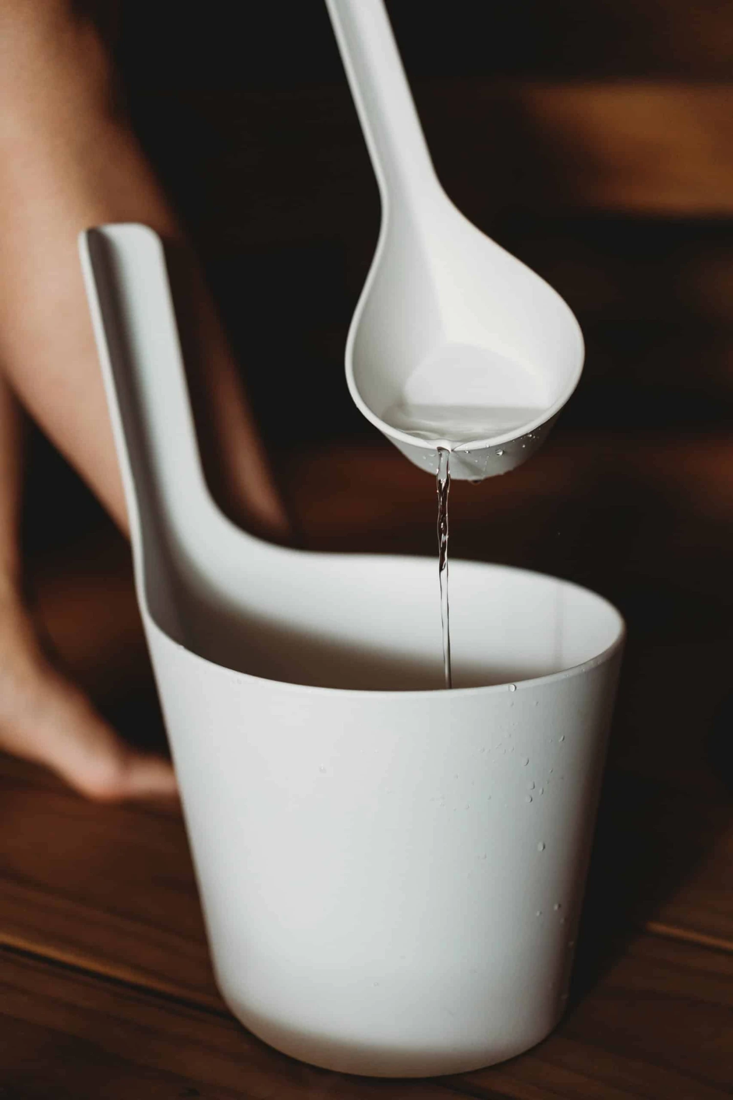 Het strakke en Scandinavische design van het relaxte Pisara saunagereedschap is het resultaat van puur Fins werk. De druppels zijn volledig gemaakt van een huishoudelijk biocomposiet, UPM Form *. Het duurzame en aangenaam aanvoelende natuurlijke vezelcomposiet is een uitstekend materiaal voor de warmte en vochtigheid van een sauna.
